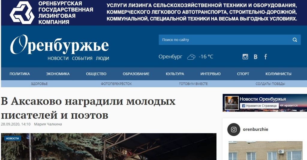 В газете «Оренбуржье» рассказали о Всероссийском семинаре-совещании молодых писателей, организаторах, руководителях и победителях пяти секций:)