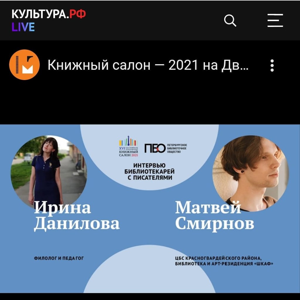 В рамках Книжного салона-2021 в Санкт-Петербурге беседовали о книгах «Это не Тритон» и «Как Самолётов бегал от пятёрок». Запись можно посмотреть на канале Культура.РФ. А я благодарю Библиотеку и арт-резиденцию ШКАФ и всех, кто работал на стенде Объединенных библиотек в эти праздничные для нашего города дни.