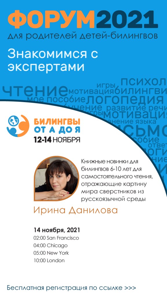 Дорогие друзья! Межконтинентальный форум «Билингвы от А до Я» начинает свою работу 12 ноября! Бесплатная регистрация открыта! До встречи онлайн в рамках главного образовательного события 2021. Страница регистрации здесь:)