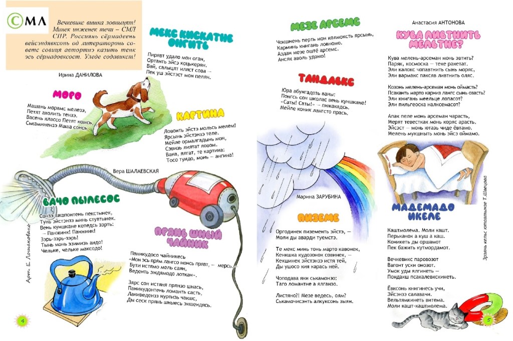Частушки из цикла «Дар убеждения» в переводе Татьяны Швецовой опубликованы в журнале «Чилисема» («Восход солнца»). «Чилисема» — эрзянский детско-юношеский журнал, издается в Саранске с ноября 1931 года. Подробнее о публикации>>
