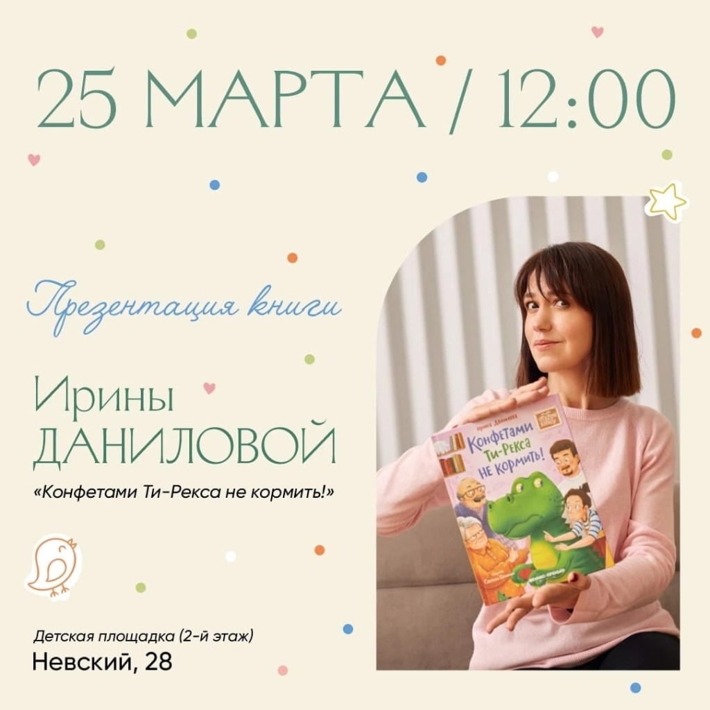 В рамках Недели детской книги-2023 состоялись встречи с ребятами в библиотеках Санкт-Петербурга и Славгорода. А также в Санкт-Петербургском Доме книги на Невском, 28 была презентована моя книга «Конфетами Ти-Рекса не кормить».