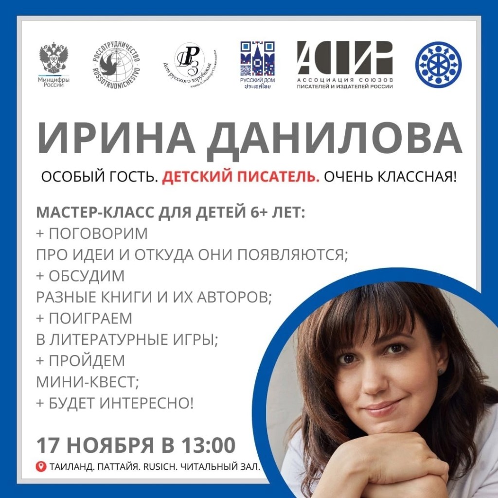 При поддержке и содействии Ассоциации союзов писателей и издателей России я проведу интерактив для детей и передам свои книги в библиотеку Русского дома в Паттайе 17 ноября 2024 года. В рамках открытия первого читального зала книг на русском языке «Люди Читают» пройдет ряд мероприятий: лекции, встречи с писателями, интерактивы и мастер-классы. Все мероприятия пройдут с участием сотрудников МИДа Российской Федерации и сотрудников Дома Русского зарубежья им. Александра Солженицына, Россотрудничества и Минцифры России.