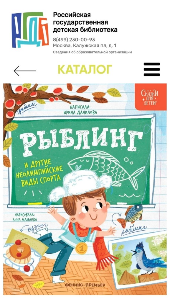 Книга «Рыблинг и другие неолимпийские виды спорта» вошла в каталог рекомендованнных Российской государственной детской библиотекой книг «Библиогид». Из рецензии «Библиогида»: «Как поймать акулу с дедушкой и выиграть чемпионат по рыблингу? Как научиться готовить пудинг и отличать съедобные грибы от несъедобных? Об этом расскажет эта задорная и яркая детская книжка. Особенности книги: читая эту забавную книгу, дети учатся новым навыкам, например, творческому подходу к задачам, и осознают важность семейной поддержки.» © 2002-2025 «Библиогид»